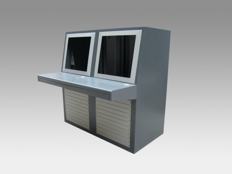 监控操作台采用模具加数控结合制造工艺制造,通用性强,机械强度等级IK10、防尘防水等级IP55,我们的钣金工程师随时为您提供专业的监控操作台项目设计服务。